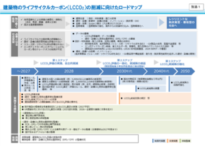 引用:国土交通省「建築物のライフサイクルカーボンの算定・評価等を促進する制度に関する検討会(【本文別添1】ロードマップ)」